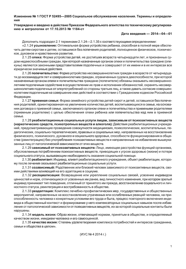 | Область применения: | Настоящий стандарт устанавливает термины и определения понятий в области социального обслуживания населения. Термины, установленные настоящим стандартом, обязательны для применения во всех видах документации и литературы по социальному обслуживанию населения, входящих в сферу работ по стандартизации и (или) использующих результаты этих работ |