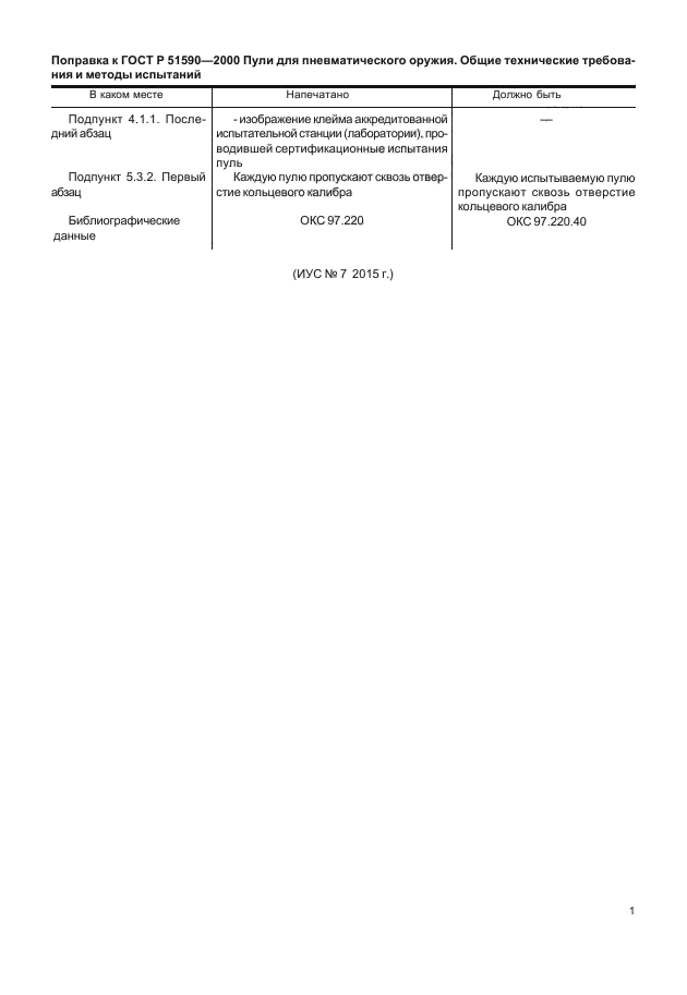 | Приложение №1: | Поправка к ГОСТ Р 51590-2000 |