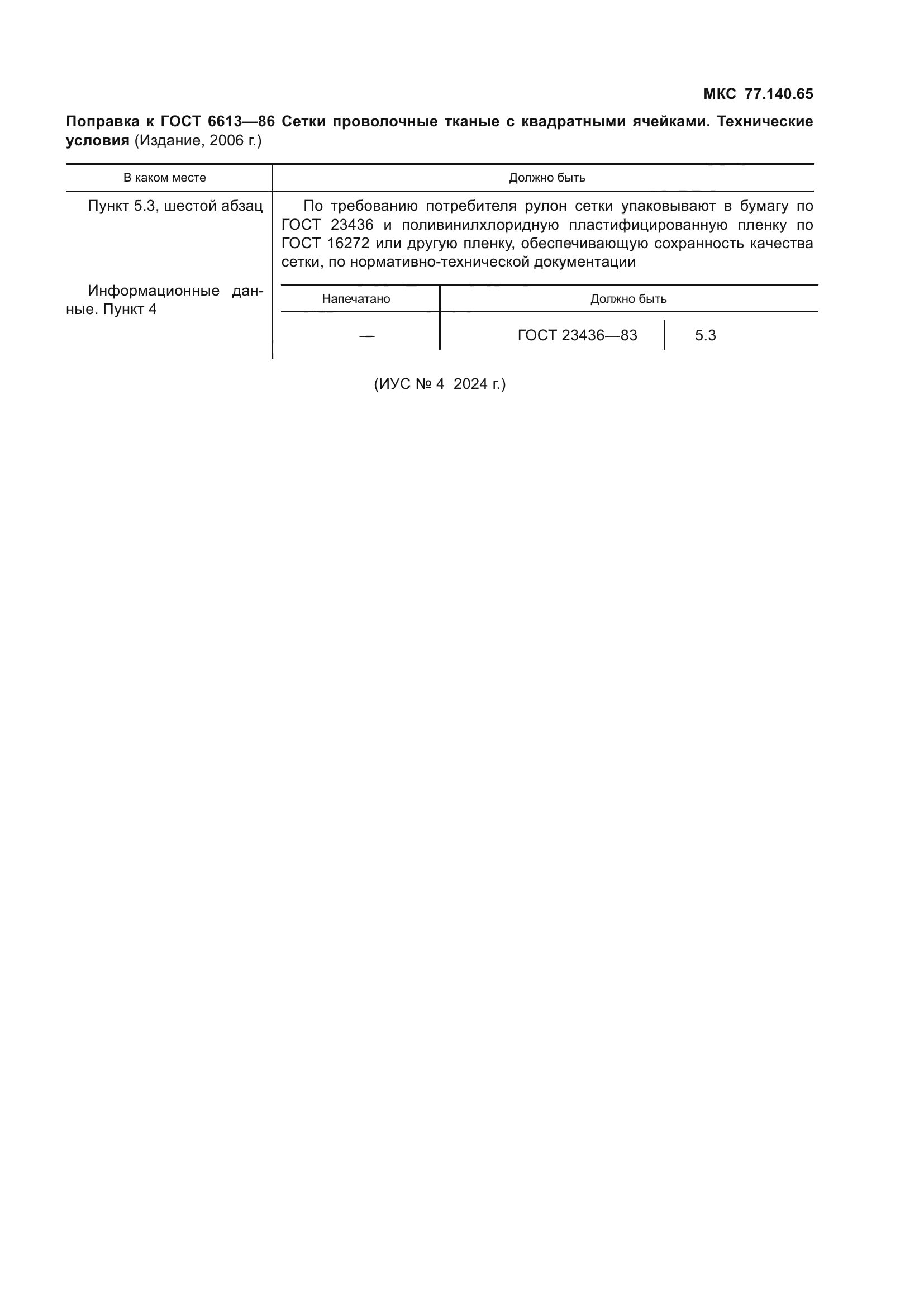 | Приложение №1: | Поправка к ГОСТ 6613-86 |