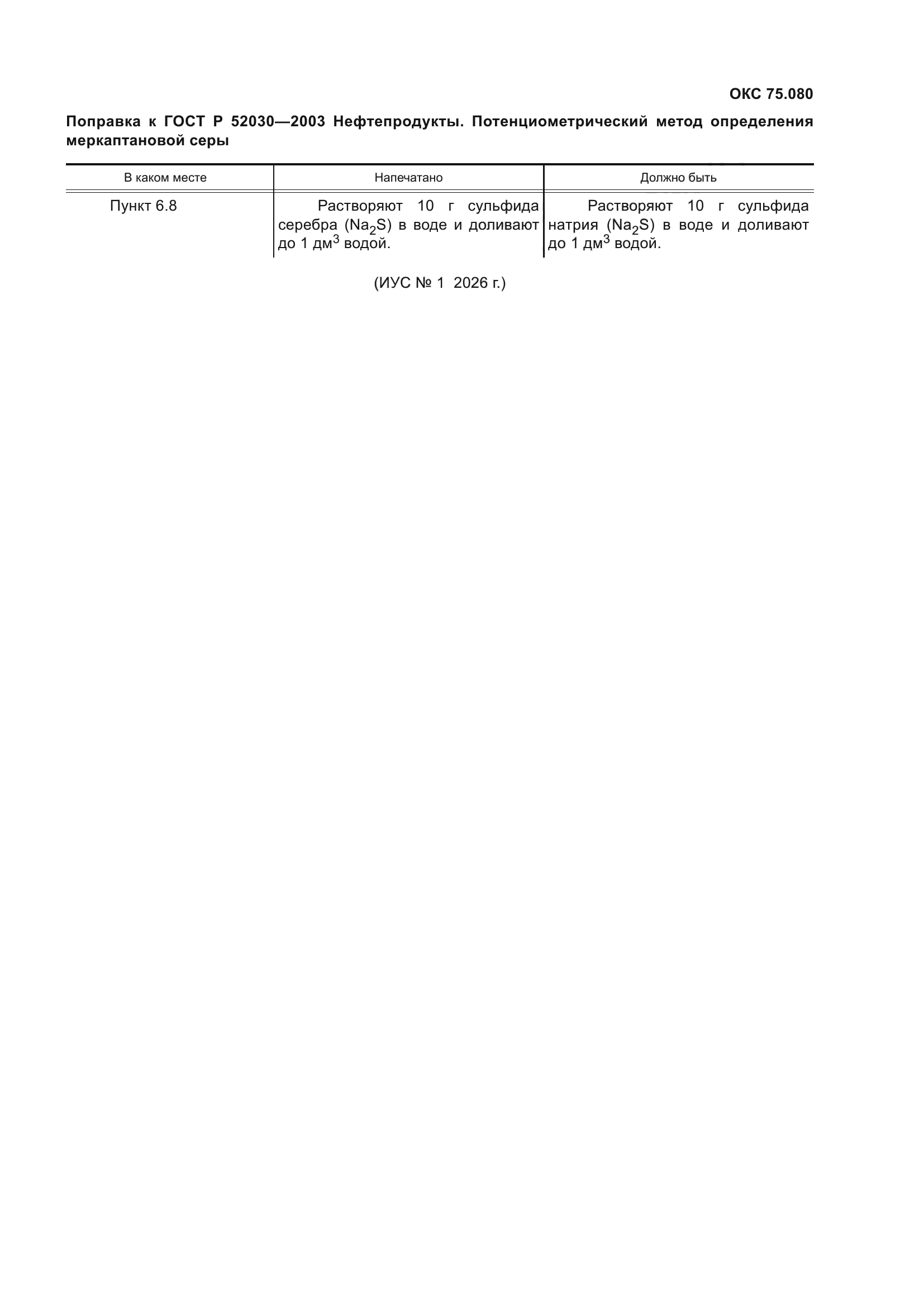 | Приложение №1: | Поправка к ГОСТ Р 52030-2003 |
