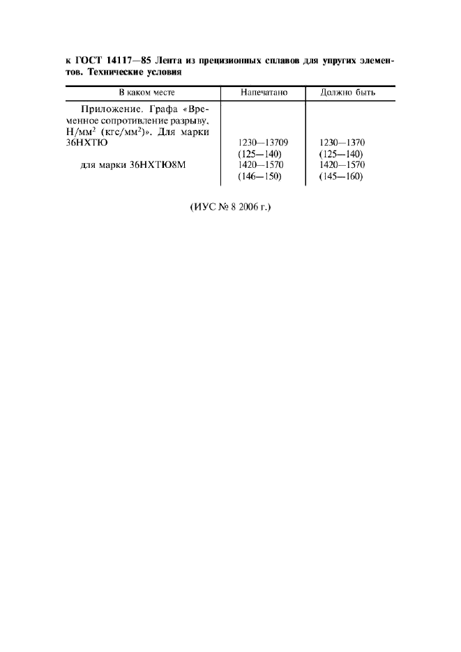 | Обозначение: | Поправка к ГОСТ 14117-85 |