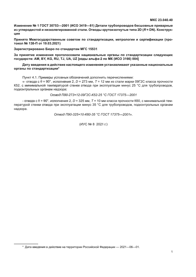 | Приложение №1: | Изменение к ГОСТ 30753-2001. Поправка к изменению |
