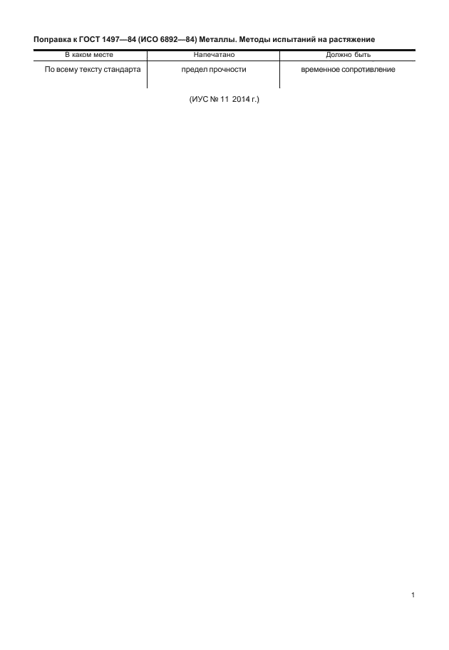 | Обозначение: | Поправка к ГОСТ 1497-84 |