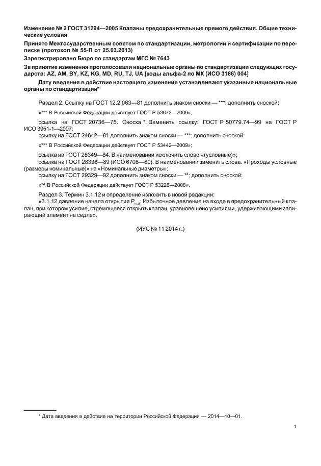 | Приложение №1: | Изменение к ГОСТ 31294-2005. Поправка к изменению |
