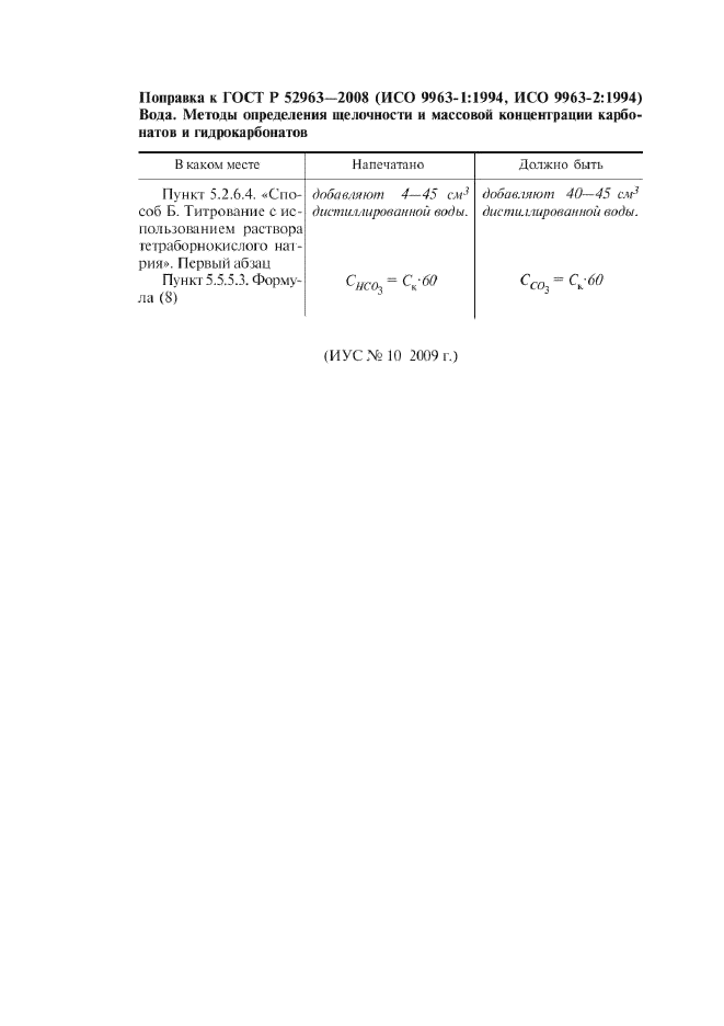 | Название англ.: | Water. Methods for determination of alkalinity, and mass concentration of carbonates and hydrocarbonates |