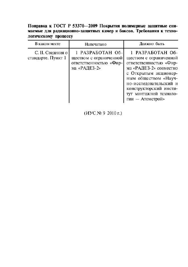 | Приложение №1: | Поправка к ГОСТ Р 53370-2009 |