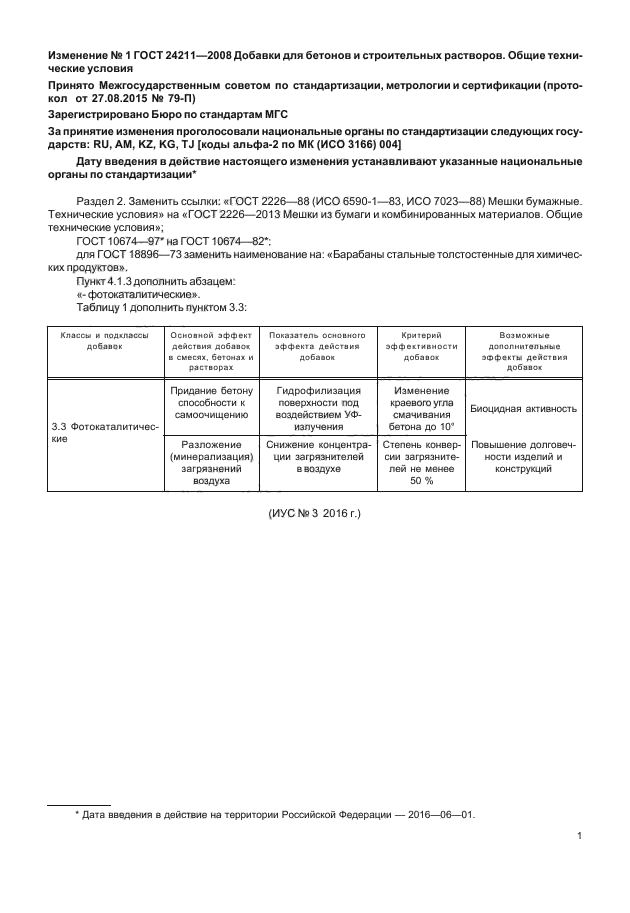 | Приложение №1: | Изменение №1 к ГОСТ 24211-2008 |