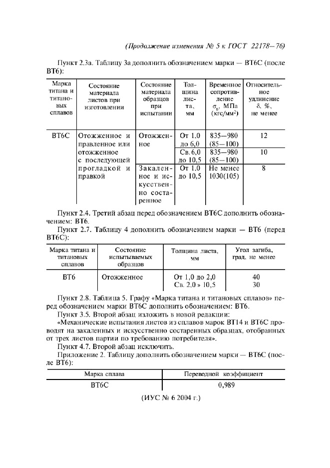 | Приложение №4: | Изменение №6 к ГОСТ 22178-76 |