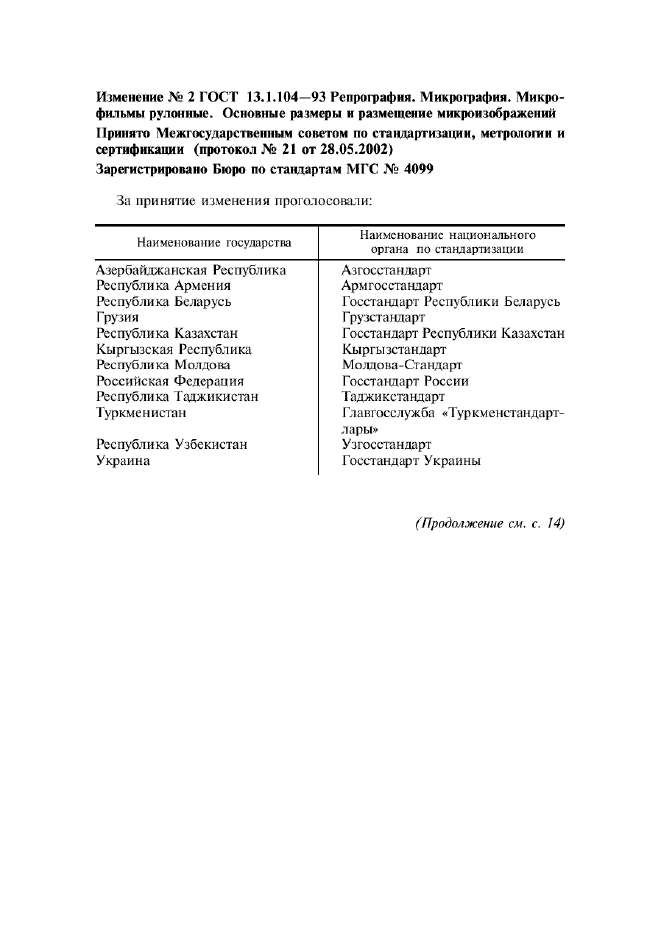 | Приложение №1: | Изменение №2 к ГОСТ 13.1.104-93 |