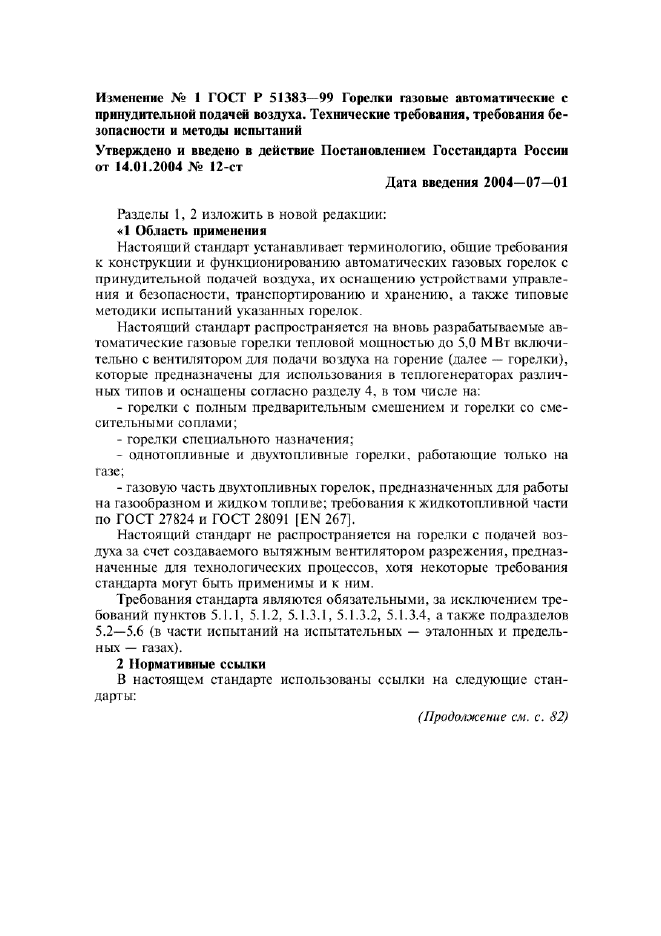 | Область применения: | Настоящий стандарт устанавливает терминологию, общие требования к конструкции и функционированию автоматических газовых горелок с принудительной подачей воздуха, их оснащению устройствами управления и безопасности, транспортированию и хранению, а также типовые методики испытаний указанных горелок.Настоящий стандарт распространяется на вновь разрабатываемые автоматические газовые горелки тепловой мощностью до 5,0 МВт включительно с вентилятором для подачи воздуха на горение, которые предназначены для использования в теплогенераторах различных типов. Настоящий стандарт не распространяется на горелки с подачей воздуха за счет создаваемого вытяжным вентилятором разрежения, предназначенные для технологических процессов, хотя некоторые требования стандарта могут быть применимы и к ним |