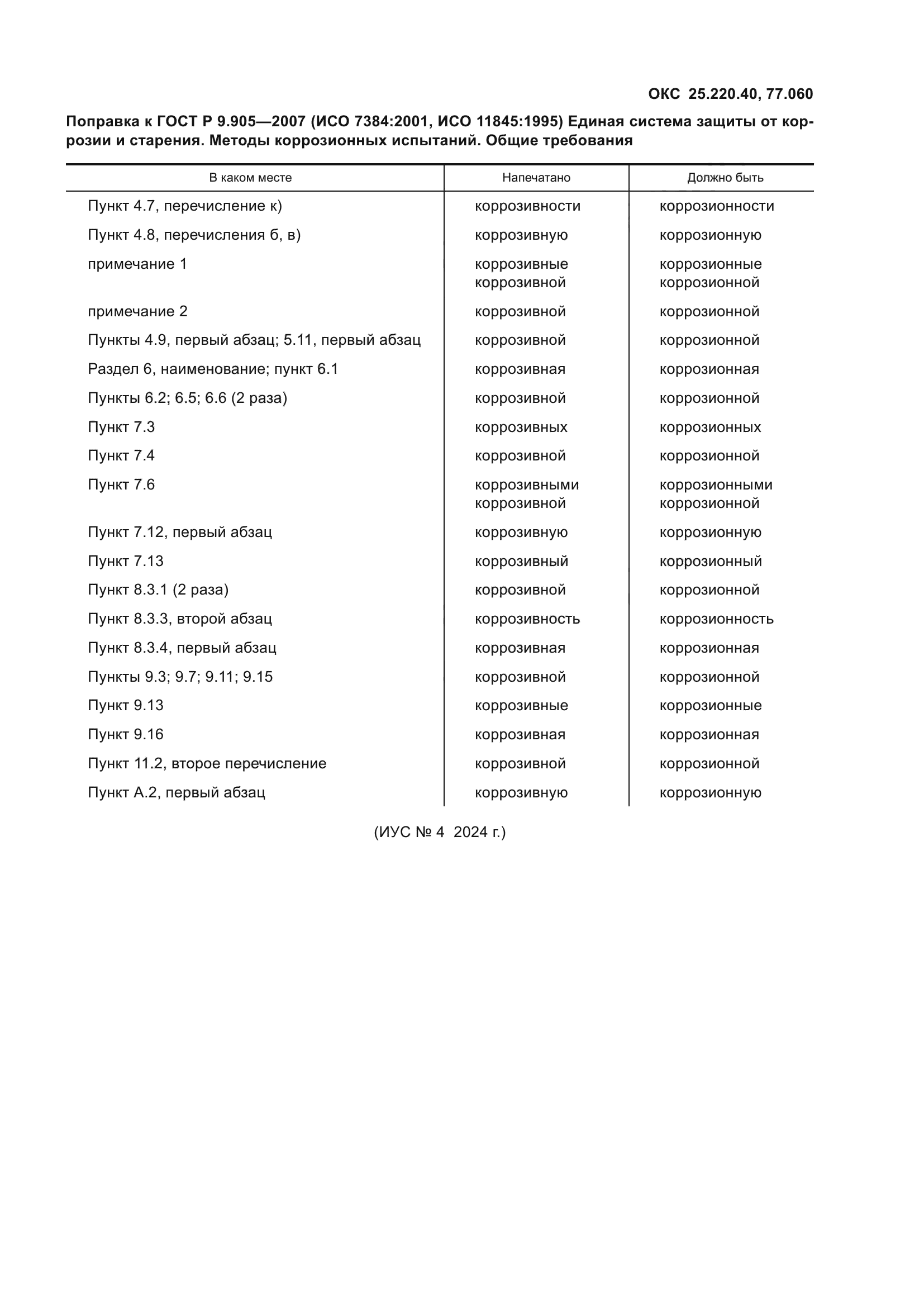 | Приложение №1: | Поправка к ГОСТ Р 9.905-2007 |