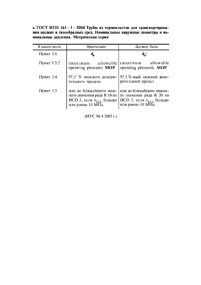 | Приложение №1: | Поправка к ГОСТ ИСО 161-1-2004 |