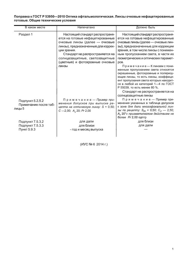 | Область применения: | Настоящий стандарт распространяется на готовые нефацетированные очковые линзы, предназначенные для коррекции зрения в том числе линзы с пониженным пропусканием света, в части их геометрических и оптических параметров. Стандарт не распространяется на солнцезащитные линзы |