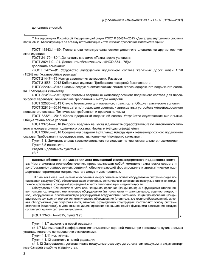 | Нормативные ссылки: | ГОСТ Р 53784-2010; ГОСТ 12.1.004-91; ГОСТ 12.1.044-89; ГОСТ 12.2.056-81; ГОСТ 9219-95; ГОСТ 9219-88; ГОСТ 10511-83; ГОСТ 11729-78; ГОСТ 11928-83; ГОСТ 14228-80; ГОСТ 15150-69; ГОСТ 15543.1–89; ГОСТ 16350-80; ГОСТ 17516.1-90; ГОСТ 18142.1-85; ГОСТ 24179-80; ГОСТ 24607-88; ГОСТ 26445-85; ГОСТ 28465-90; ГОСТ 30247.0-94; ГОСТ 31365–2008; ГОСТ Р 55231–2012; ГОСТ Р 55437–2013; ГОСТ 3475–81 Устройство автосцепное подвижного состава железных дорог колеи 1520 (1524) мм. Установочные размеры; ГОСТ 21447–75 Контур зацепления автосцепки. Размеры; ГОСТ 31565–2012 Кабельные изделия. Требования пожарной безопасности; ГОСТ 32202–2013 Сжатый воздух пневматических систем железнодорожного подвижного состава. Требования к качеству; ГОСТ 32410–2013 Крэш-системы аварийные железнодорожного подвижного состава для пассажирских перевозок. Технические требования и методы контроля; ГОСТ 32565–2013 Стекло безопасное для наземного транспорта. Общие технические условия; ГОСТ 32913–2014 Аппараты поглощающие сцепных и автосцепных устройств железнодорожного подвижного состава. Технические требования и правила приемки; ГОСТ 33321–2015 Железнодорожный подвижной состав. Устройства акустические сигнальные. Общие технические условия; ГОСТ 33754–2016 Выбросы вредных веществ и дымность отработавших газов автономного тягового и моторвагонного подвижного состава. Нормы и методы определения; ГОСТ 33976–2016; ГОСТ 2582-2013; ГОСТ 12.4.026-2015; ГОСТ 9238-2013; ГОСТ 9544-2015; ГОСТ 10150-2014; ГОСТ 10393-2014; ГОСТ 22483-2012 |