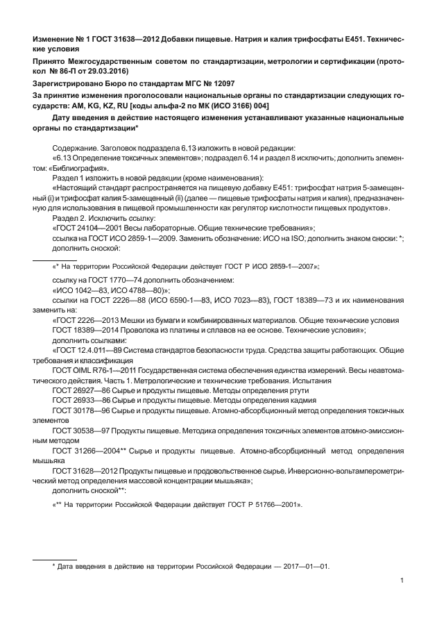 | Приложение №1: | Изменение №1 к ГОСТ 31638-2012 |