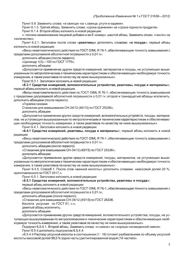 | Нормативные ссылки: | ГОСТ ИСО 2859-1-2009; ГОСТ 8.579-2002; ГОСТ 12.1.005-88; ГОСТ 12.1.007-76; ГОСТ 61-75; ГОСТ 83-79; ГОСТ 1277-75; ГОСТ 1770-74; ГОСТ 2080-76; ГОСТ 2226-88; ГОСТ 2603-79; ГОСТ 3118-77; ГОСТ 3760-79; ГОСТ 3765-78; ГОСТ 4143-78; ГОСТ 4198-75; ГОСТ 4201-79; ГОСТ 4221-76; ГОСТ 4328-77; ГОСТ 4461-77; ГОСТ 4517-87; ГОСТ 4525-77; ГОСТ 4919.1-77; ГОСТ 4919.2-77; ГОСТ 5100-85; ГОСТ 6709-72; ГОСТ 6825-91; ГОСТ 8515-75; ГОСТ 9147-80; ГОСТ 9285-78; ГОСТ 9336-75; ГОСТ 10354-82; ГОСТ 10485-75; ГОСТ 10678-76; ГОСТ 10690-73; ГОСТ 11078-78; ГОСТ 14192-96; ГОСТ 14919-83; ГОСТ 14961-91; ГОСТ 15846-2002; ГОСТ 17308-88; ГОСТ 19360-74; ГОСТ 21205-83; ГОСТ 24104-2001; ГОСТ 25336-82; ГОСТ 25794.1-83; ГОСТ 26932-86; ГОСТ 27752-88; ГОСТ 28498-90; ГОСТ 29227-91; ГОСТ 29251-91; ГОСТ 30090-93; ГОСТ Р ИСО 2859-1-2007; ГОСТ 12.4.011-89;ГОСТ OIML R 76-1-2011; ГОСТ 26927-86; ГОСТ 26930-86; ГОСТ 30538-97; ГОСТ 31266-2004; ГОСТ Р 51766-2001; ГОСТ 31628-2012; ГОСТ 18389-2014 |
