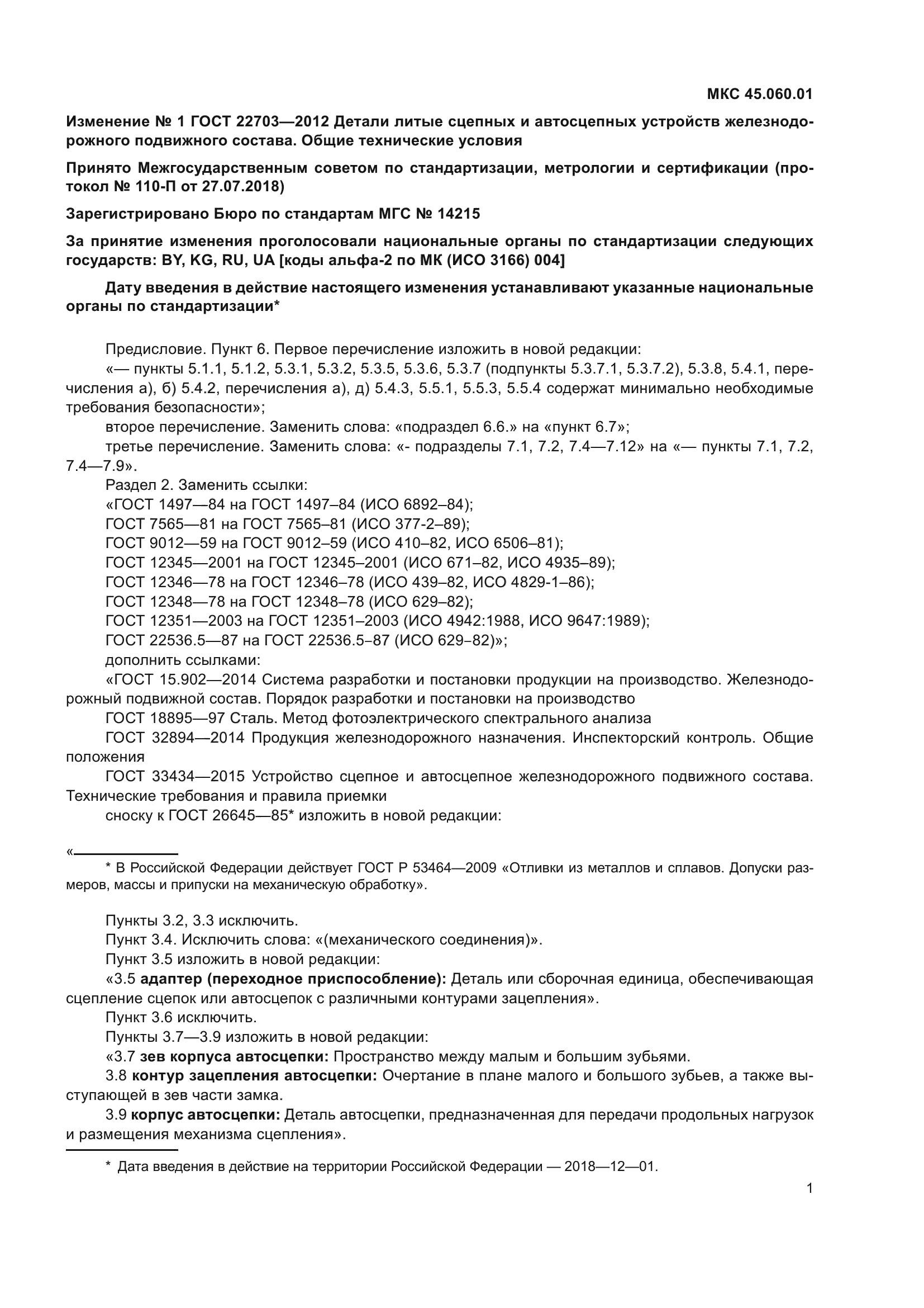 | Приложение №1: | Изменение к ГОСТ 22703-2012. Поправка к изменению |