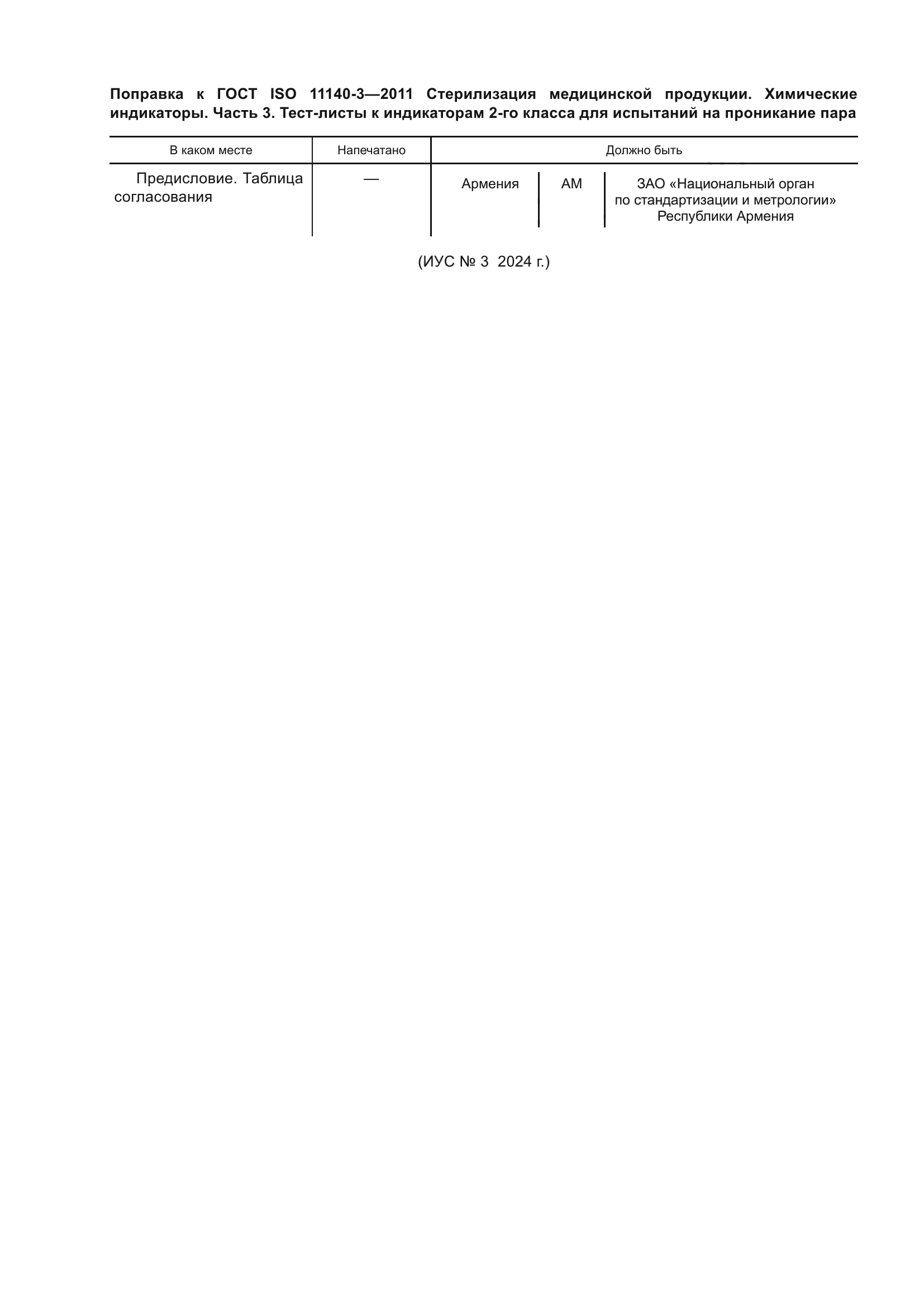 | Приложение №1: | Поправка к ГОСТ ISO 11140-3-2011 |