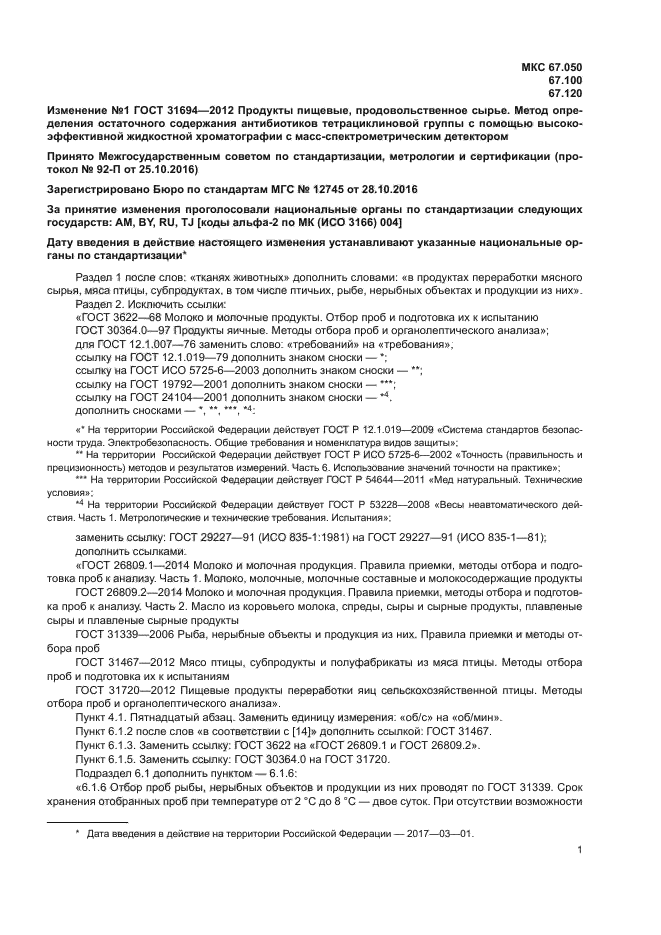 | Приложение №1: | Изменение к ГОСТ 31694-2012. Поправка; Изменены ссылочные НД |