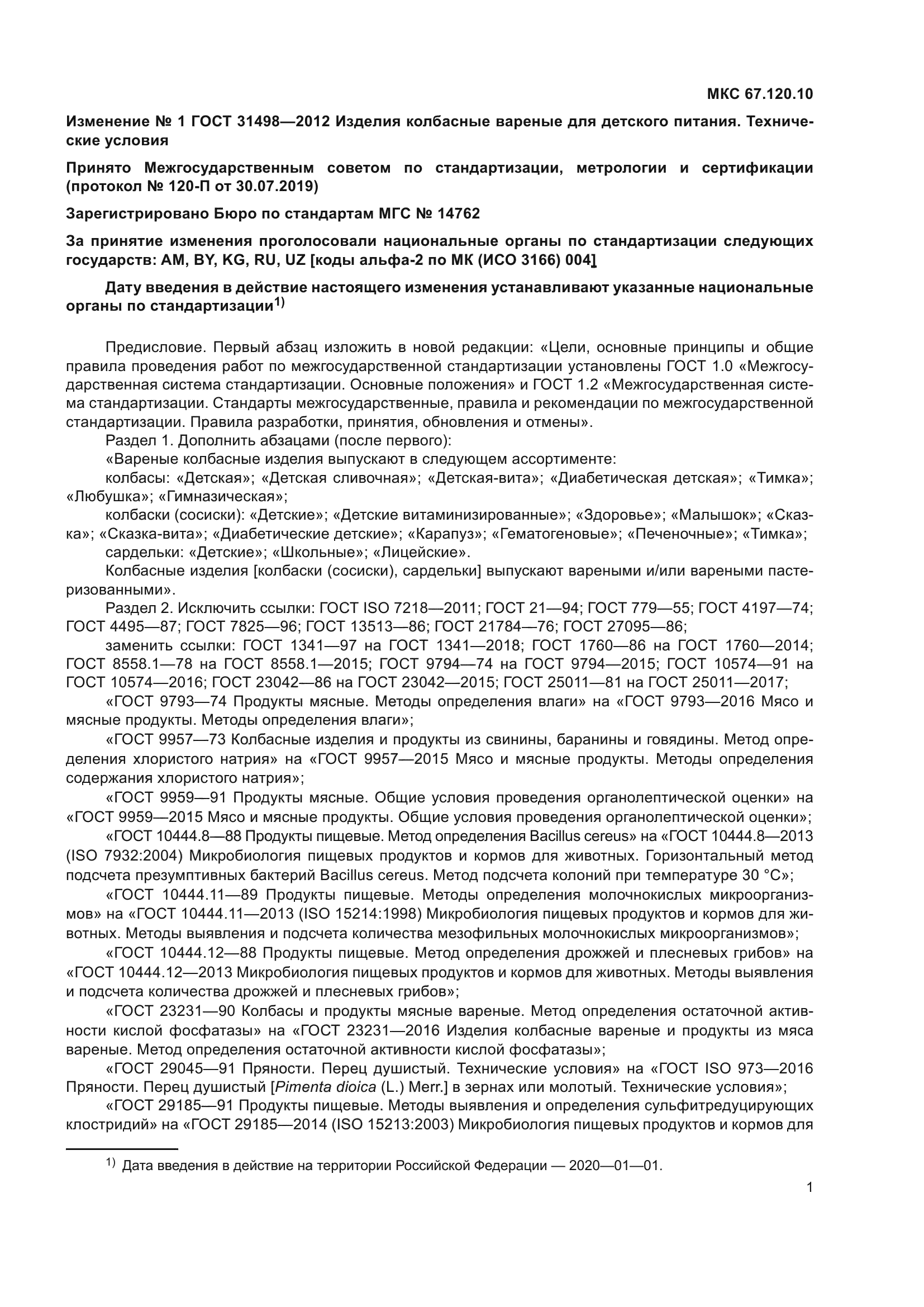 | Приложение №1: | Изменение к ГОСТ 31498-2012. Поправка к изменению |