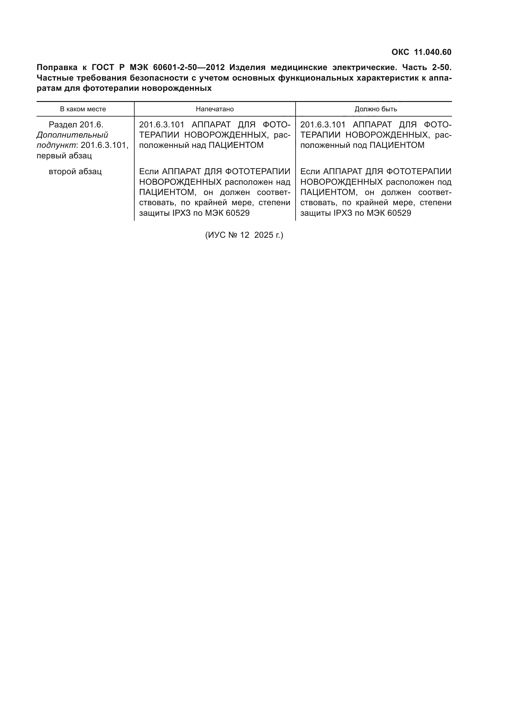 | Приложение №1: | Поправка к ГОСТ Р МЭК 60601-2-50-2012 |