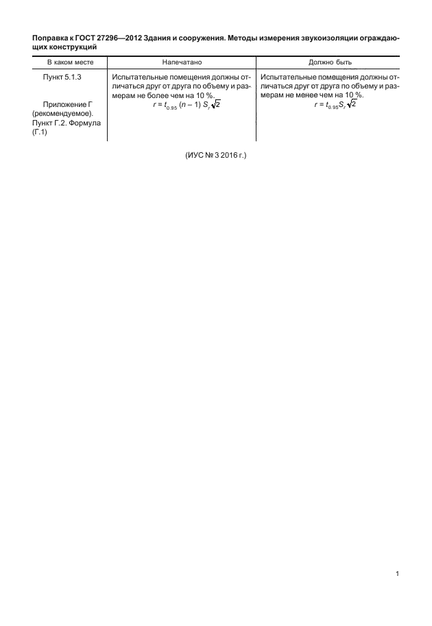 | Приложение №1: | Поправка к ГОСТ 27296-2012 |