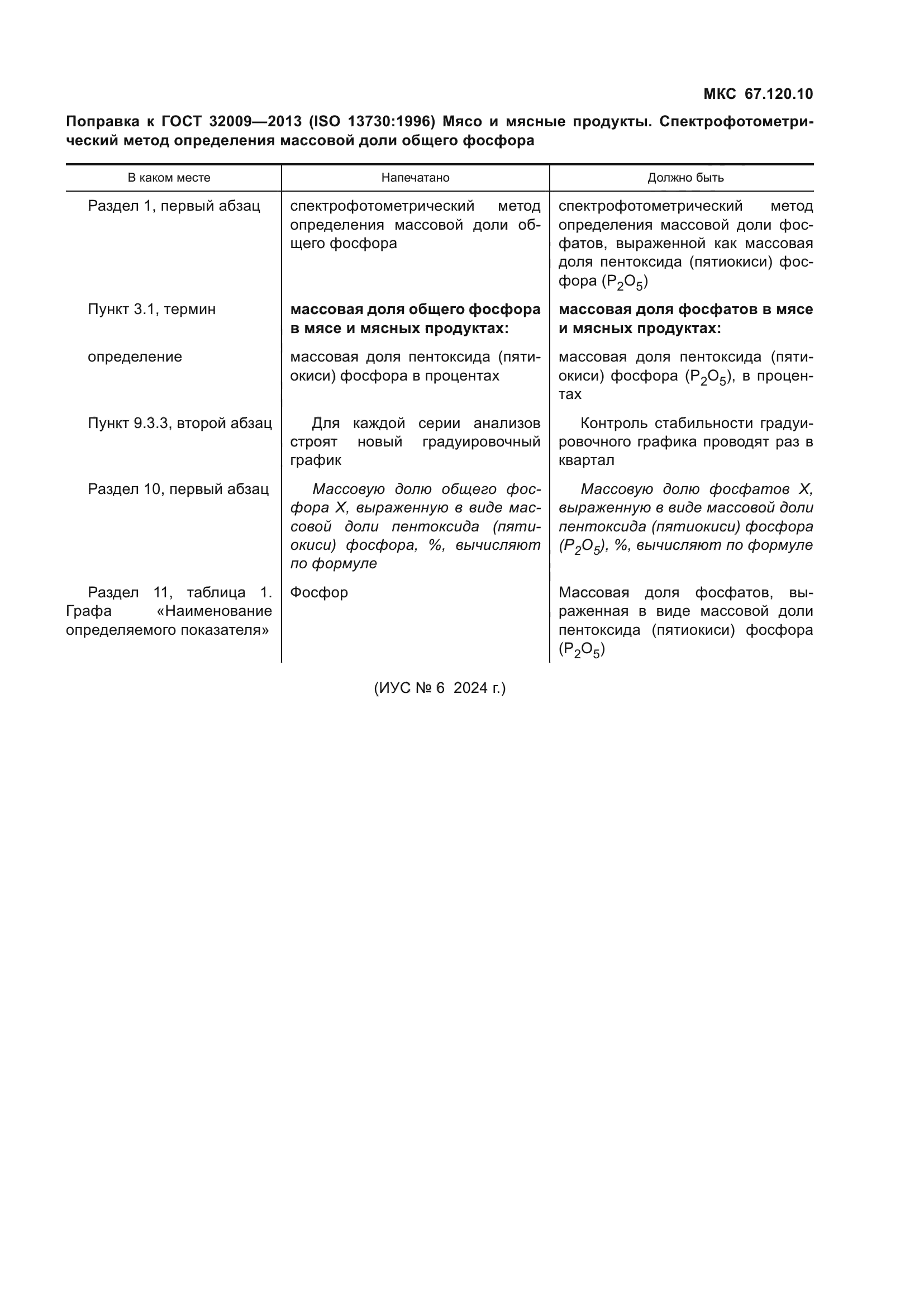 | Название рус.: | Мясо и мясные продукты. Спектрофотометрический метод определения массовой доли общего фосфора |