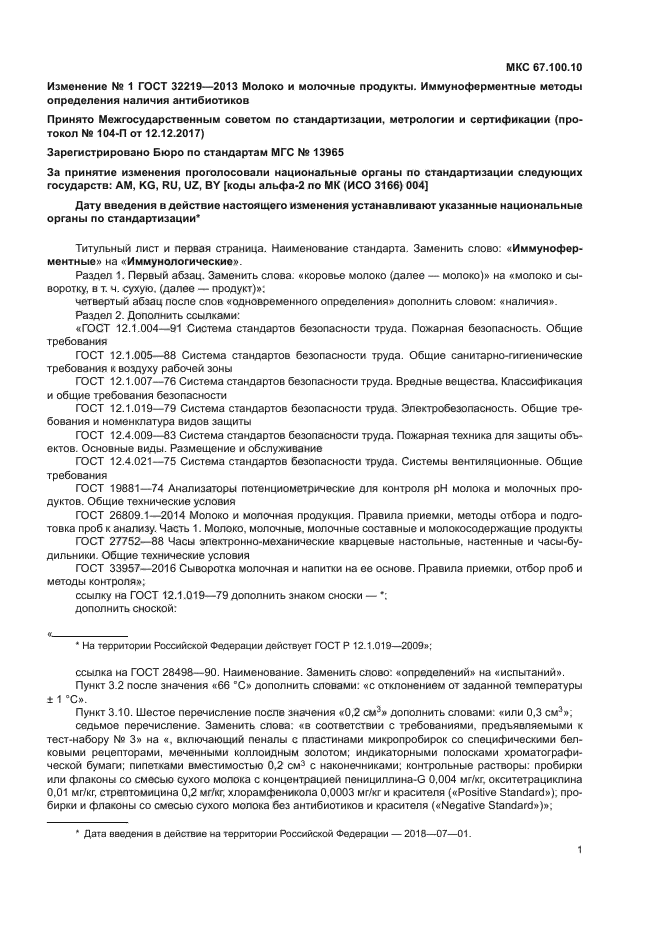 | Приложение №1: | Изменение №1 к ГОСТ 32219-2013 |