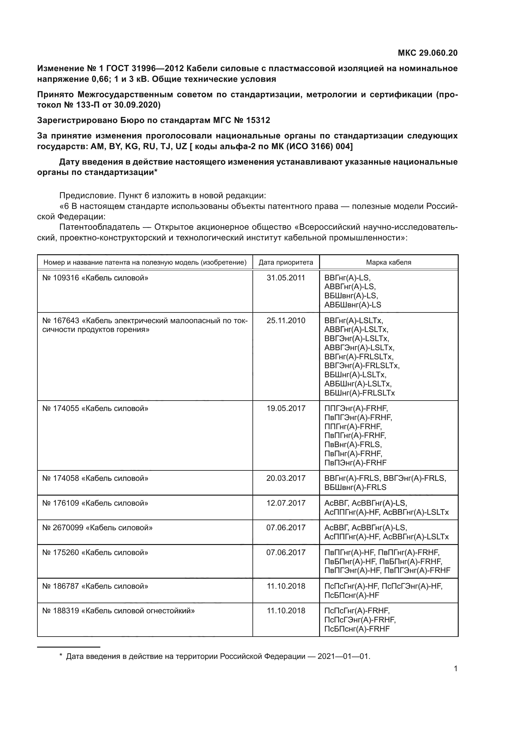 | Приложение №2: | Изменение №1 к ГОСТ 31996-2012 |