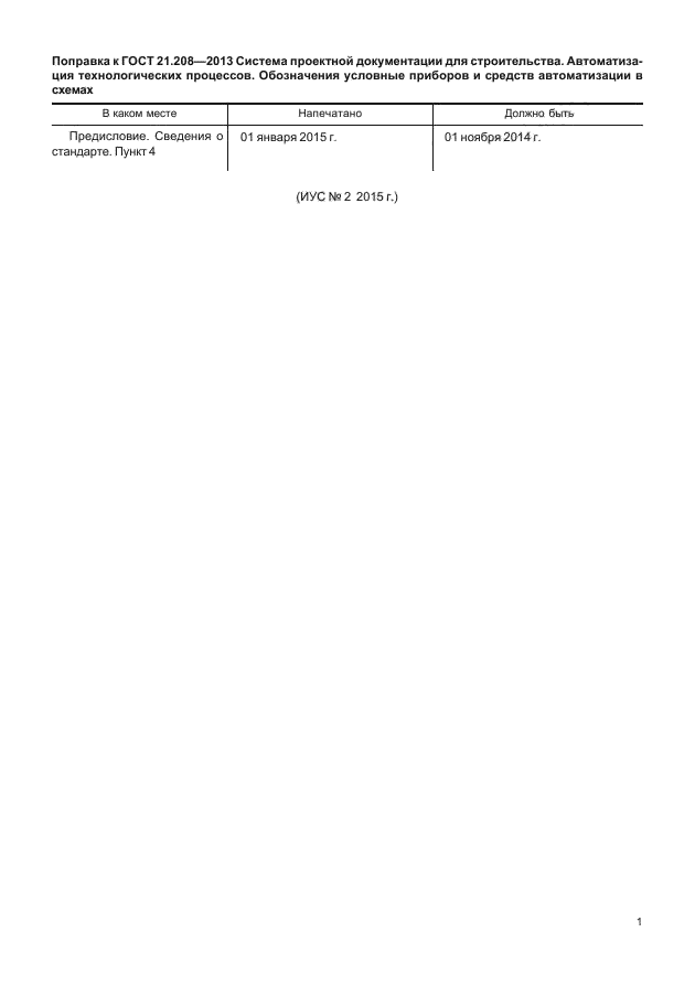 | Приложение №1: | Поправка к ГОСТ 21.208-2013 |
