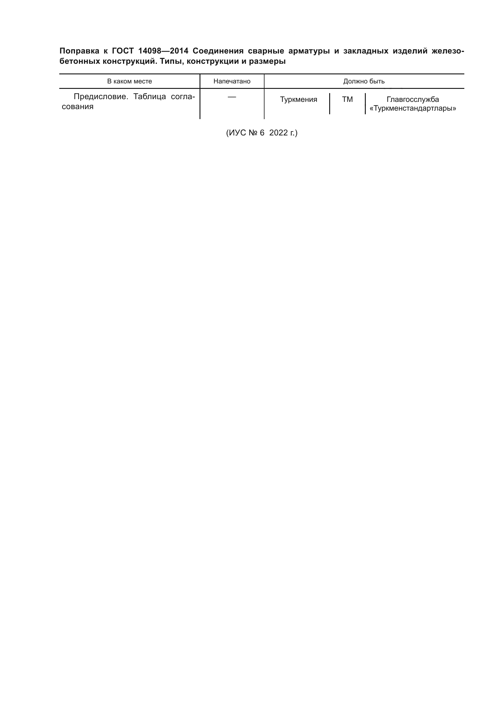 | Приложение №2: | Поправка к ГОСТ 14098-2014 |