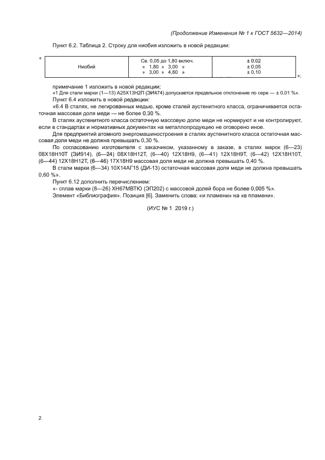 | Приложение №2: | Поправка к ГОСТ 5632-2014 |
