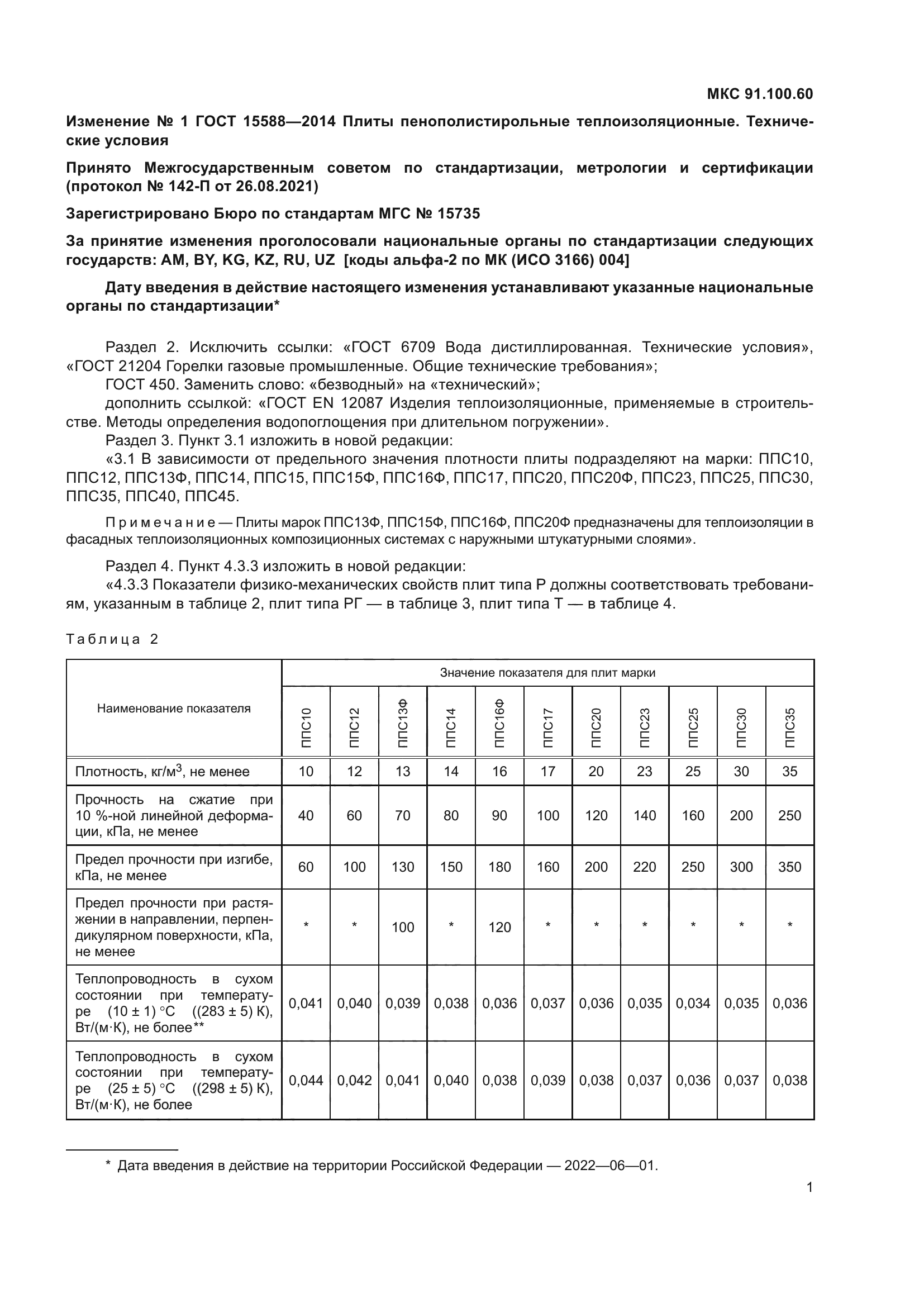 | Приложение №1: | Изменение №1 к ГОСТ 15588-2014 |
