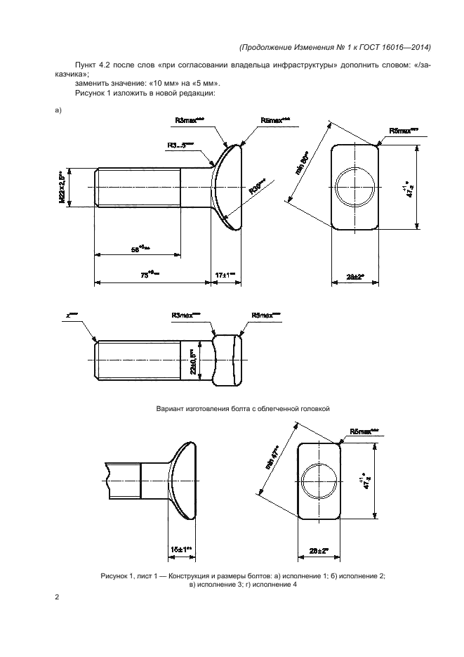 | Область применения: | Настоящий стандарт распространяется на болты клеммные нормальной точности (класс точности В по ГОСТ 1759.1, в Российской Федерации действует ГОСТ Р ИСО 4759-1-2009 «Изделия крепежные. Допуски. Часть 1. Болты, винты, шпильки и гайки. Классы точности A, B, и C».), применяемые для крепления рельса к подкладке в раздельных рельсовых скреплениях и устанавливает технические условия к ним |