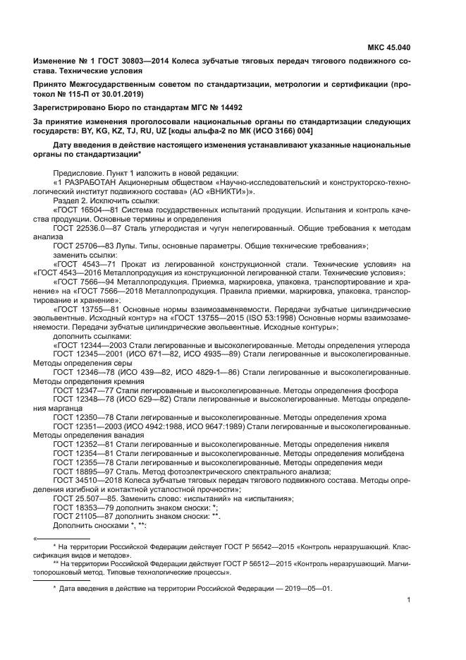 | Приложение №1: | Изменение №1 к ГОСТ 30803-2014 |