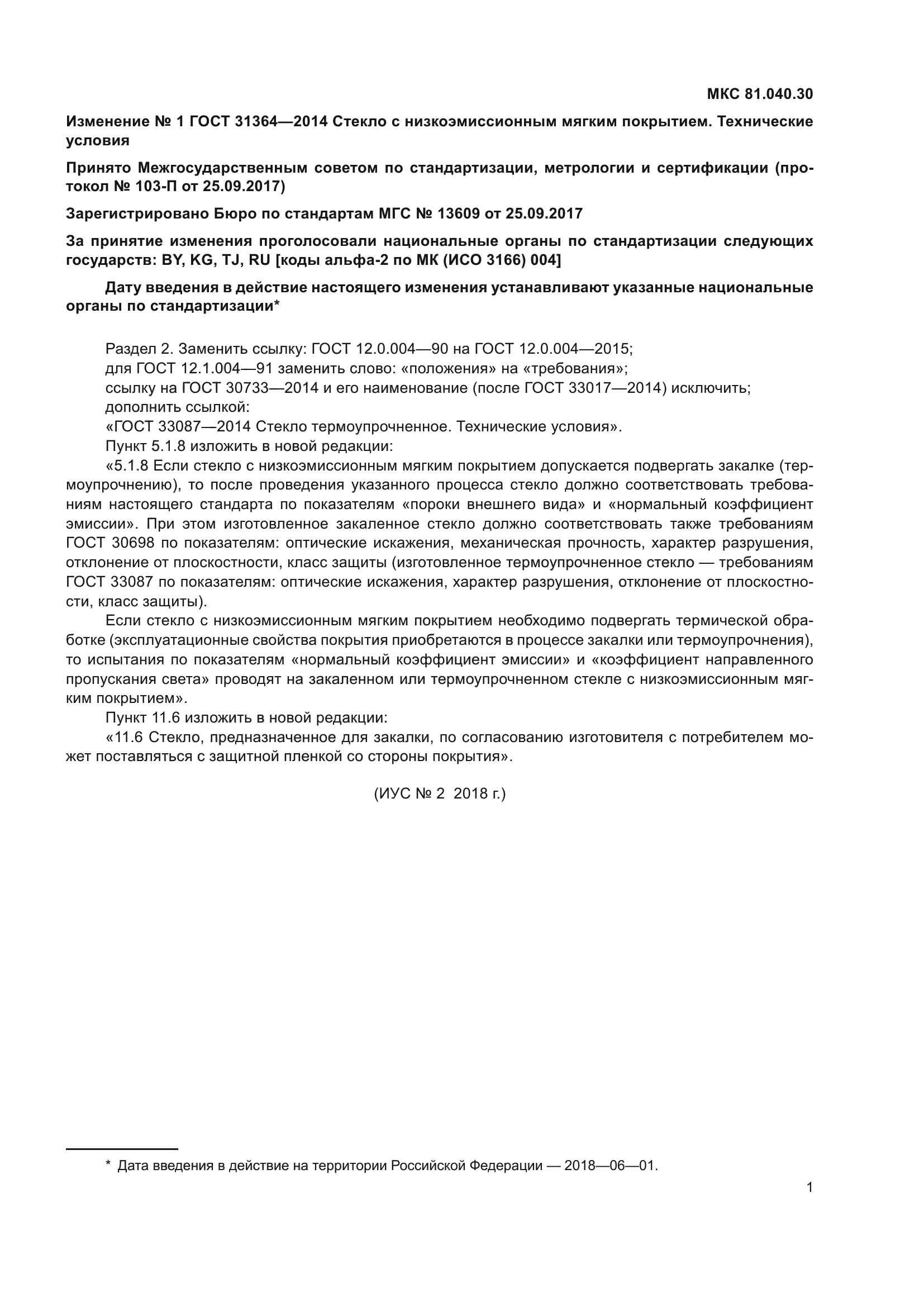 | Приложение №1: | Изменение №1 к ГОСТ 31364-2014 |
