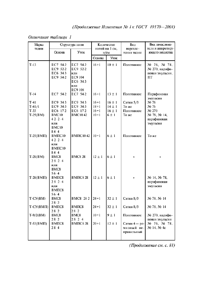 | Приложение №1: | Изменение №1 к ГОСТ 19170-2001 |