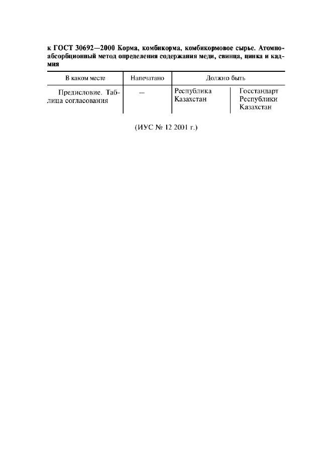 Скачать ГОСТ 30692-2000 Корма, комбикорма, комбикормовое сырье. Атомно-абсорбционный метод определения содержания меди, свинца, цинка и кадмияДата актуализации: 01.06.2025 ГОСТ 30692-2000