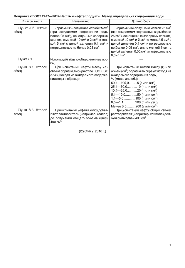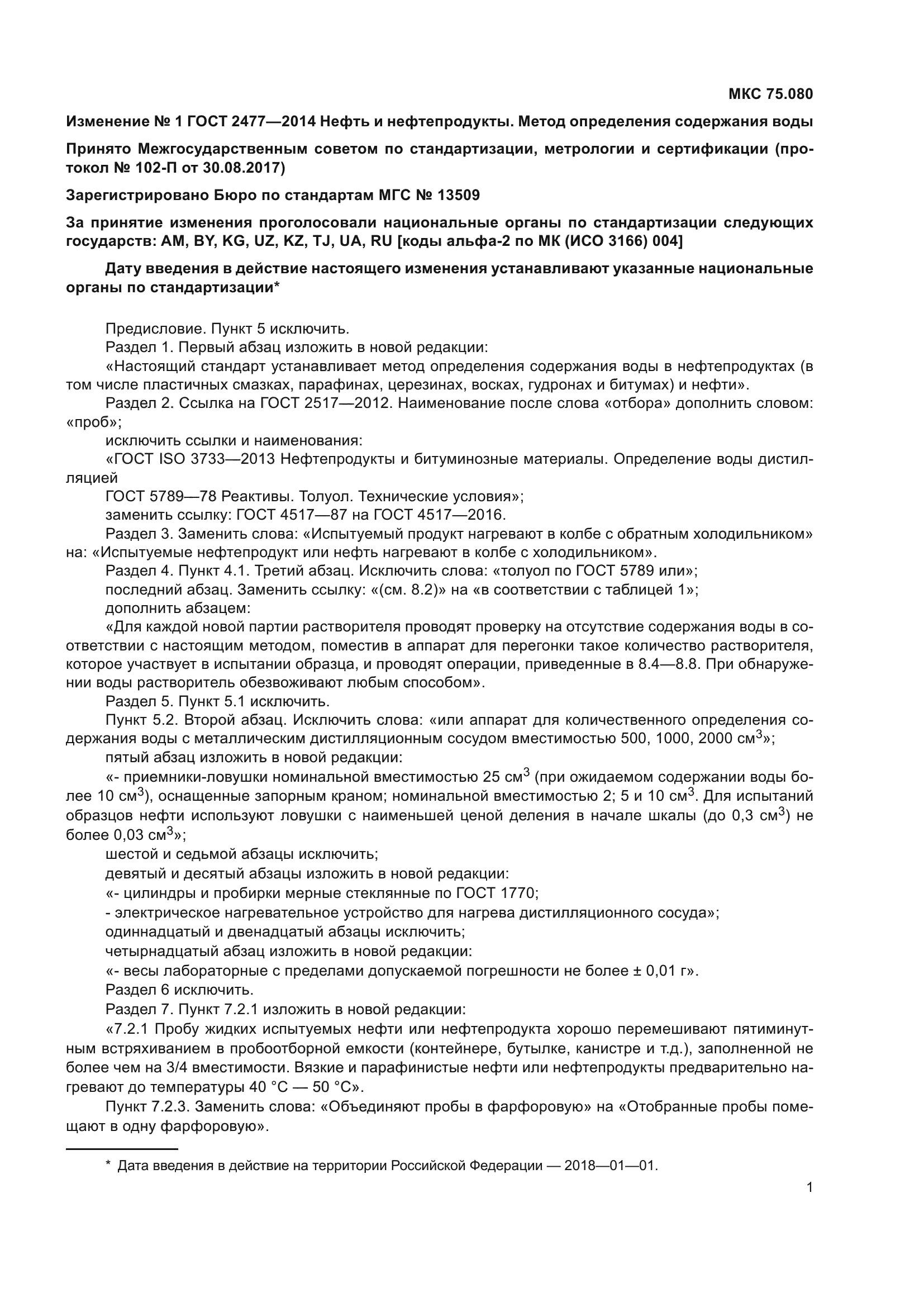 | Приложение №2: | Изменение №1 к ГОСТ 2477-2014 |