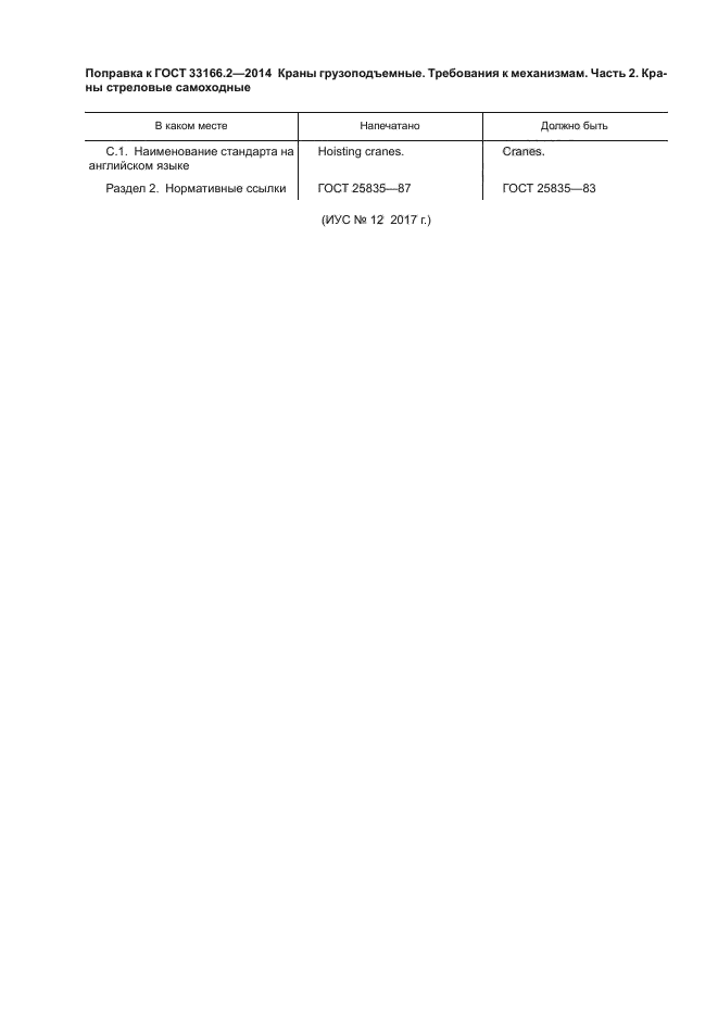 | Область применения: | Настоящий стандарт устанавливает специальные требования к механизмам стреловых кранов для обеспечения безопасности в процессе эксплуатации и дополняет или изменяет требования ГОСТ 33166.1. Стандарт не распространяется на мобильные (стреловые самоходные), башенные краны, погрузочные краны (краны–манипуляторы), а также краны, установленные на морских платформах и плавсредствах. Невыполнение требований настоящего стандарта может привести к увеличению риска использования стреловых кранов или к сокращению срока их службы. Настоящий стандарт применим ко всем новым кранам, изготовленным после истечения одного года после ее утверждения. Стандарт не имеет целью требовать замены или модернизации существующего оборудования. Однако при модернизации оборудования, требования к его свойствам должны быть пересмотрены в соответствии с данным стандартом. Если выполнение требований стандарта при модернизации вызывает существенные изменения конструкции, то возможность и необходимость приведения оборудования в соответствие с требованиями данного стандарта должна определяться изготовителем (проектировщиком), а при его отсутствии – а при его отсутствии – организацией, выполняющей его функции, а последующие изменения должны быть выполнены владельцем (пользователем) в течение одного года. |