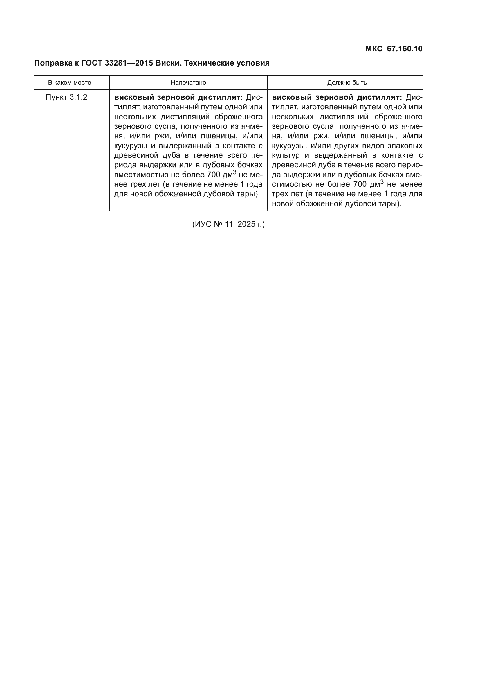 | Область применения: | Настоящий стандарт распространяется на виски – спиртной напиток из зернового сырья |