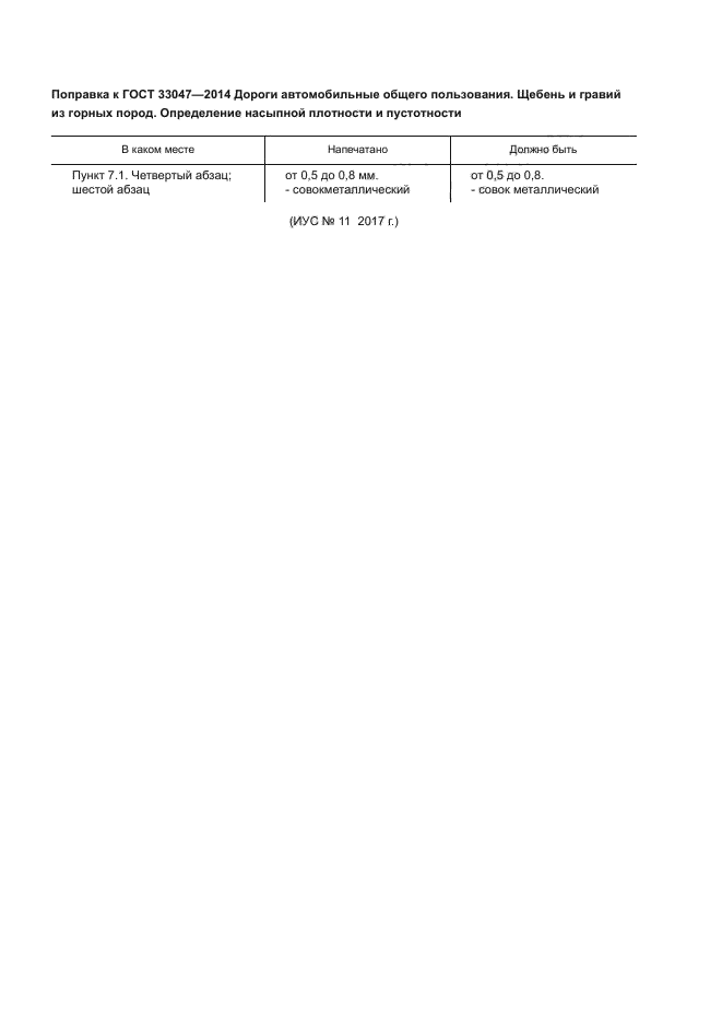 | Название рус.: | Дороги автомобильные общего пользования. Щебень и гравий из горных пород. Определение насыпной плотности и пустотности |