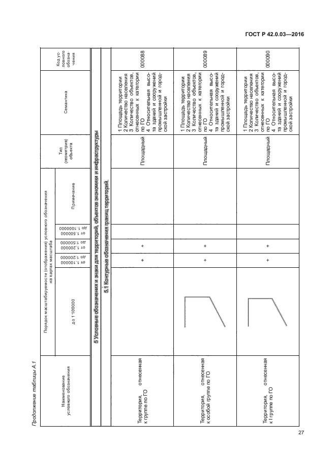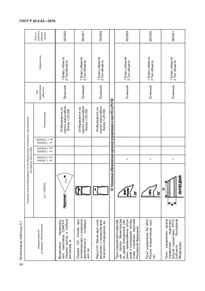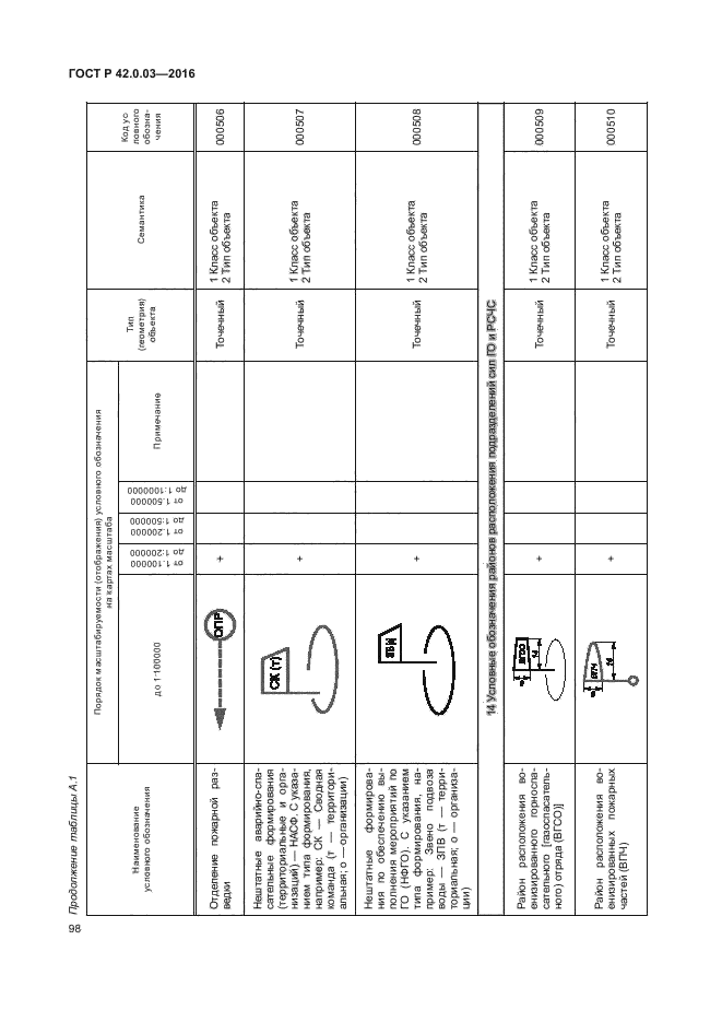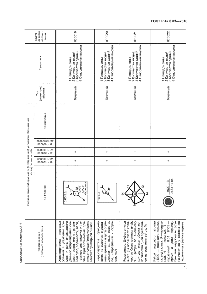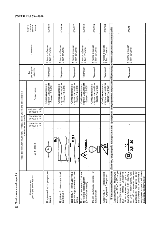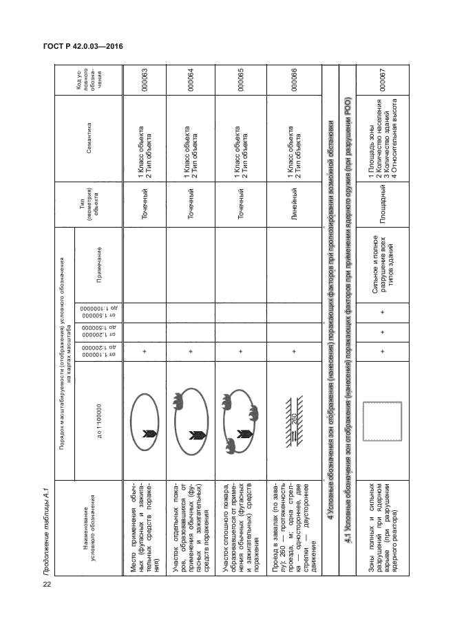 | Название рус.: | Гражданская оборона. Правила нанесения на карты прогнозируемой и сложившейся обстановки при ведении военных конфликтов и чрезвычайных ситуаций природного и техногенного характера. Условные обозначения | | Дата актуализации текста: | 01.01.2021 | | Дата актуализации описания: | 01.07.2023 | | Дата издания: | 19.09.2016 | | Дата введения: | 01.06.2017 | | Взамен: | ГОСТ Р 22.0.10-96 | | Нормативные ссылки: | ГОСТ 2.304-81; ГОСТ 22.0.03-97; ГОСТ 22.0.05-97; ГОСТ 28441-99; ГОСТ Р 52438-2005; ГОСТ Р 52155-2003; ГОСТ Р 22.0.02-2016 | | Область применения: | Настоящий стандарт устанавливает правила нанесения на карты, в том числе на электронные карты (ЭК) программно-аппаратных комплексов и автоматизированных систем, обеспечивающих решение задач в области гражданской обороны (ГО), предупреждения и ликвидации последствий чрезвычайных ситуаций (ЧС) природного и техногенного характера, следующей информации: - о территориях, зонах, объектах, силах и средствах, затрагивающих вопросы организации, планирования и ведения мероприятий по ГО и защите населения и территорий; - о прогнозной и оперативной обстановок, возникающих при военных конфликтах или вследствие этих конфликтов, а также при ЧС природного и техногенного характера; - о планировании и ведении мероприятий по ГО, предупреждению и ликвидации последствий ЧС природного и техногенного характера. Стандарт определяет основные условные обозначения и порядок их нанесения. Национальный стандарт предназначен для формализации и установления требований по нанесению картографической информации в области ГО, предупреждения и ликвидации последствий ЧС органами управления, силами ГО и единой государственной системы предупреждения и ликвидации чрезвычайных ситуаций (РСЧС) | |