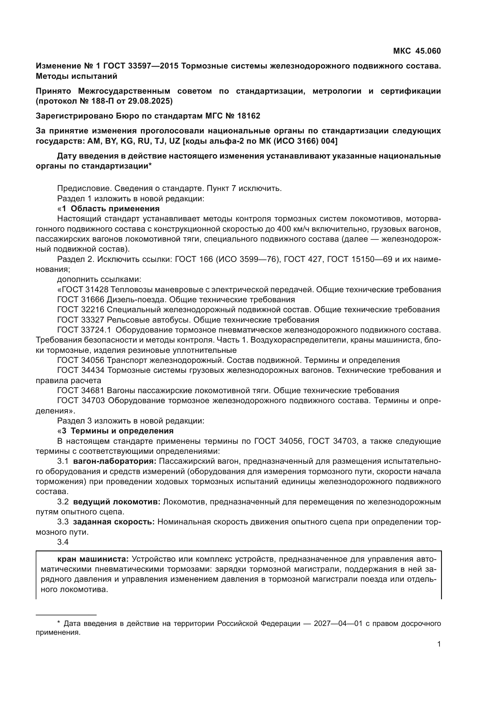 | Приложение №1: | Изменение №1 к ГОСТ 33597-2015 |