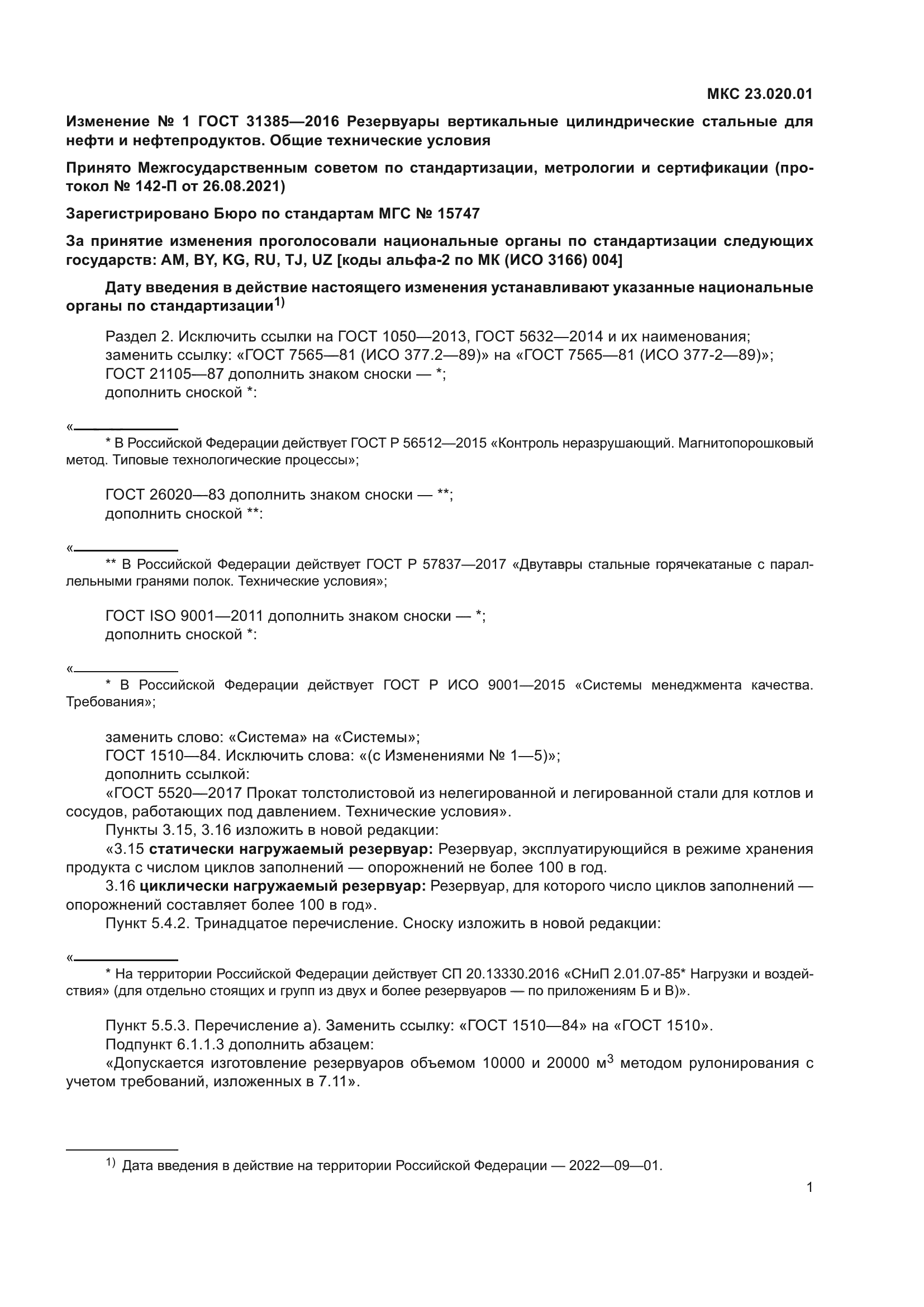 | Приложение №2: | Изменение №1 к ГОСТ 31385-2016 |