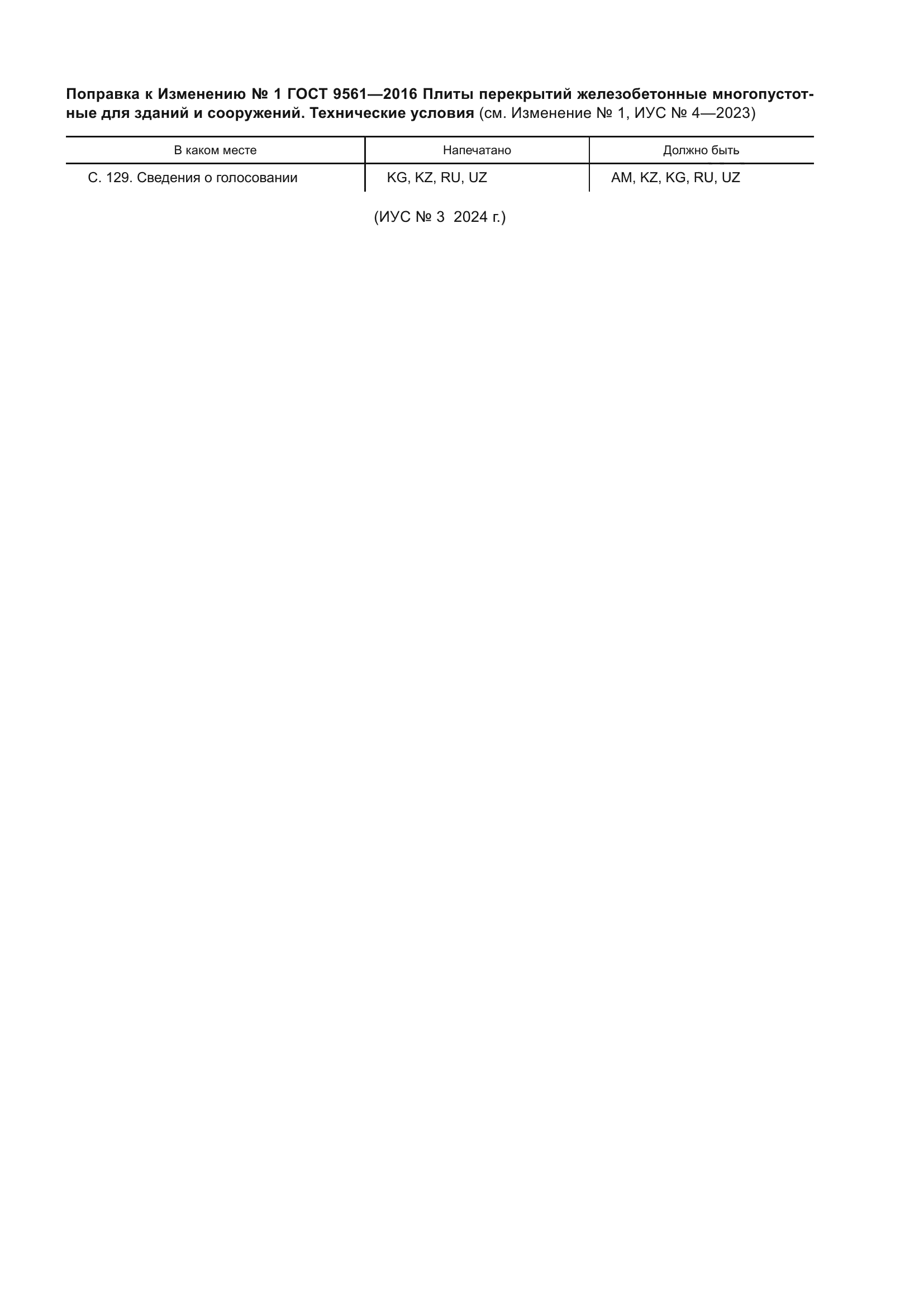 | Приложение №1: | Изменение к ГОСТ 9561-2016. Поправка к изменению |