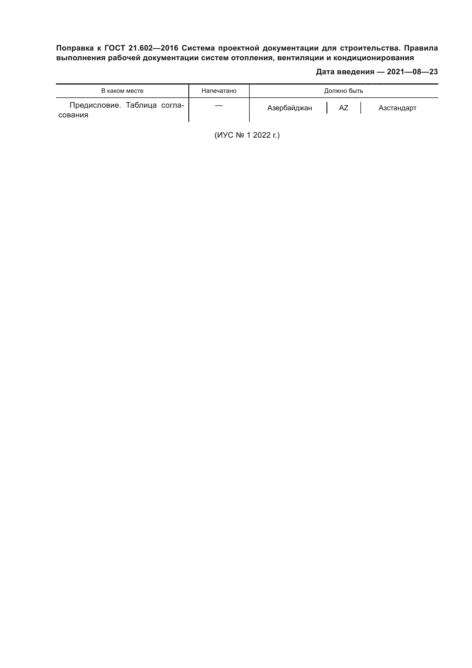 | Приложение №1: | Поправка к ГОСТ 21.602-2016 |