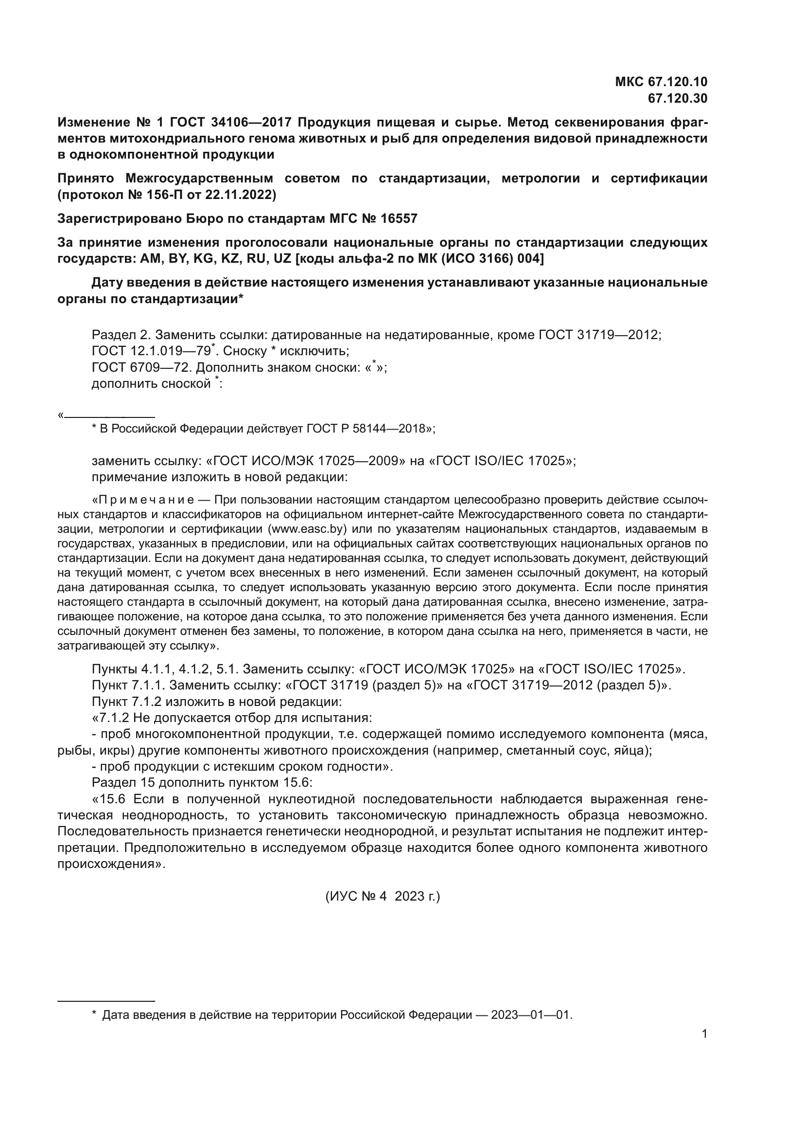 | Приложение №1: | Изменение №1 к ГОСТ 34106-2017 |