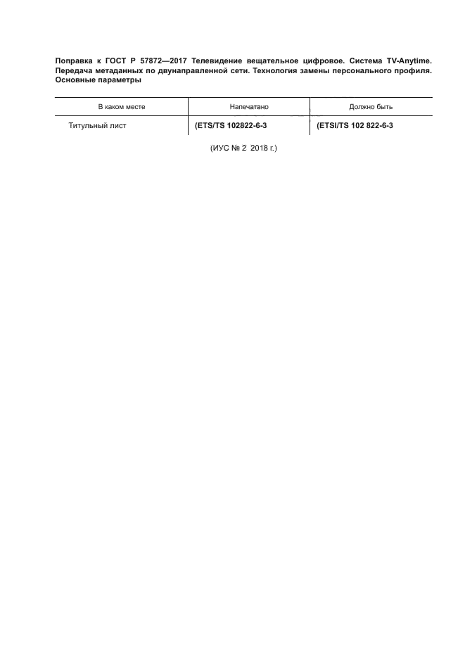 | Название рус.: | Телевидение вещательное цифровое. Система TV-Anytime. Передача метаданных по двунаправленной сети. Технология замены персонального профиля. Основные параметры |