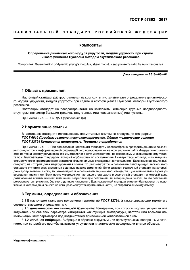 Скачать ГОСТ Р 57862-2017 Композиты. Определение динамического модуля упругости, модуля упругости при сдвиге и коэффициента. Пуассона методом акустического резонансаДата актуализации: 01.06.2025 ГОСТ Р 57862-2017